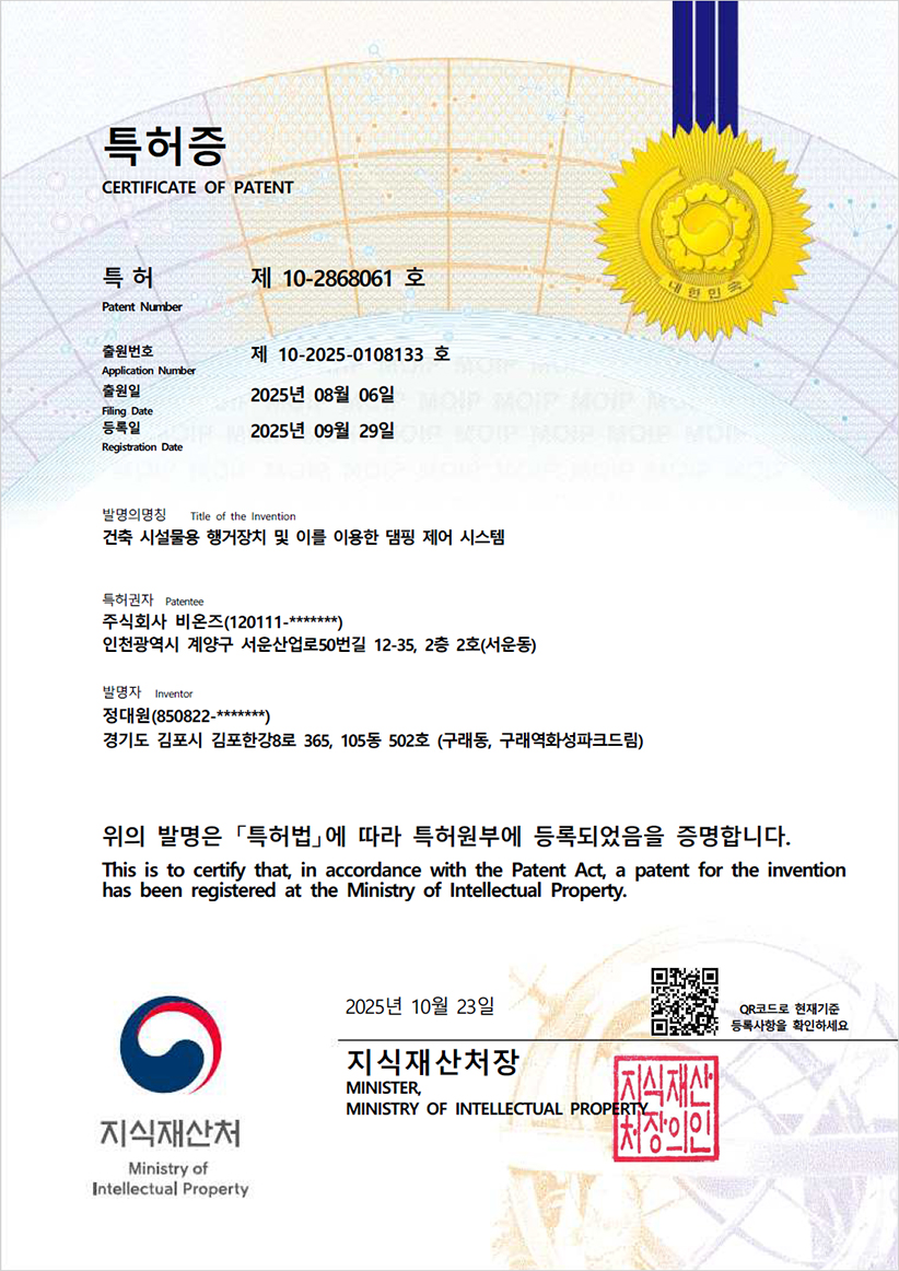 건축 시설물용 행거장치 및 이를 이용한 댐핑 제어 시스템